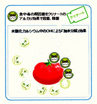 CLEANART 含97%氫氧化鈣 [Ca(OH)²],有 pH12 高鹼性,能透過乳化作用去除食品表面多餘的農藥及化學肥料,原理跟肥皂一樣。